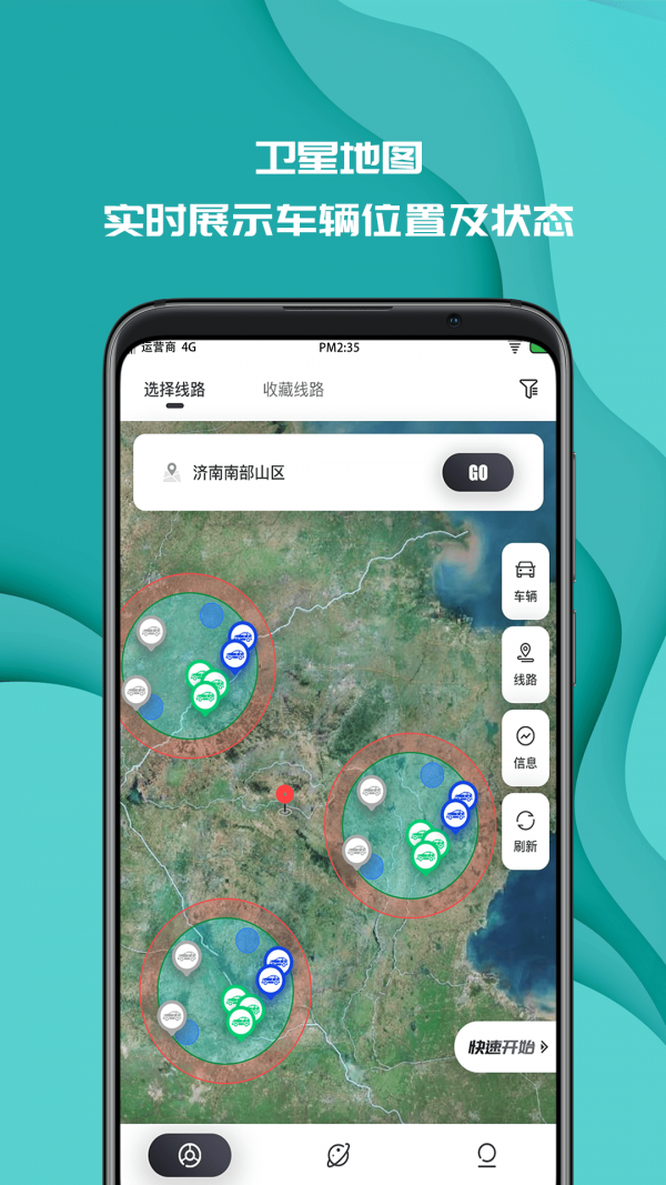 2、实时地图视角和车辆行驶时间、速度、电池电压、电量等参数显示;
