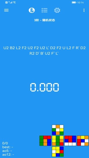 打乱所有WCA职业,包括2~4级,金字塔,S,魔戒,随机状态打乱;提供标准加扰 查看加扰状态;其他非标准打乱和训练打乱,如三阶LL训练、高级反边缘训练等。