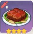 描述:焖制而成的兽肉。将肥瘦相间的兽肉佐以调料下锅慢炖,直至焖酥。成品色泽透亮,软糯不腻。据说是某代璃月七星中「天枢星」苦心研制的杰作。